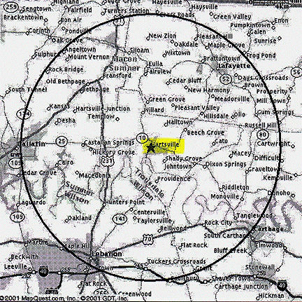 July 25, 2001 Tucson, Arizona - Since several atmospheric scientists suggested that the abnormal power surge in Hartsville, Tennessee on July 6, 2001 at 10:45 a.m. might have been a rare clear day lightning strike, I contacted the National Lightning Detection Network (NLDN), the only national lightning detection network in the United States. The network has more than 108 sensors that instantaneously detect the electromagnetic signals given off when lightning strikes the earth's surface. Each sensor transmits the lightning information via satellite to the Network Control Center (NCC) in Tucson, Arizona. Using data from two or more sensors, the "intersection" of the data enables the determination of a strike location with a 15 mile radius.