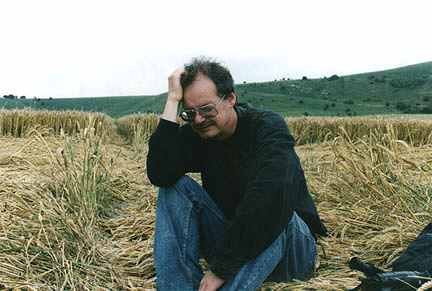 September 1, 2002 East Field, Wiltshire, England - Two weeks ago on August 14th was my last day in England. A new crop formation had been reported in the famous East Field below Adam's Grave and Knap Hill to the north and across the road from Woodborough Hill and Tawsmead Copse to the south. As I walked toward the formation, I took a photograph with Woodborough Hill in the background.