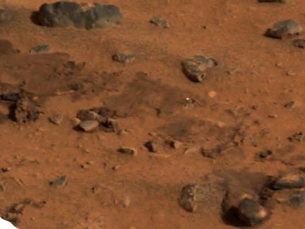 Panoramic view inside the Gusev crater that surrounds NASA's Spirit lander and its robotic rover. NASA has received 73 percent of a 360-degree crater view. Image courtesy NASA and JPL.