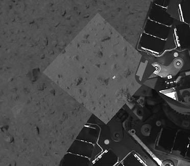 January 19, 2004 Pasadena, California - The Mars Exploration Rover Spirit deployed its robotic arm early Friday morning, January 16, 2004, to use its microscopic imager, one of four geological instruments located on the arm. The instrument will help scientists analyze and understand Martian rocks and soils by taking very high resolution, close-up images. The first surprise was the clumpy nature of the red soil and some planetary geologists wonder if an electrostatic binding of the dust could be at work.