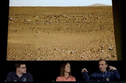 "Certainly like the green in the Gusev crater picture or by looking at the development of darker spots toward the South Pole which are tied to seasonal variations, it certainly gives rise to the speculation that there could be algae."