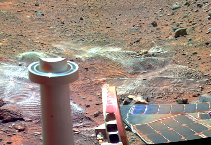 This week he emailed me twice about Spirit's long trek across the Columbia Hills and included the stunning image of Martian soil rich in magnesium sulfate. No question that Mars was wetter when the Columbia Hills rocks were deposited before the Martian climate suddenly changed very early in the red planet's history to greater dryness. See more information in Earthfiles 022505.