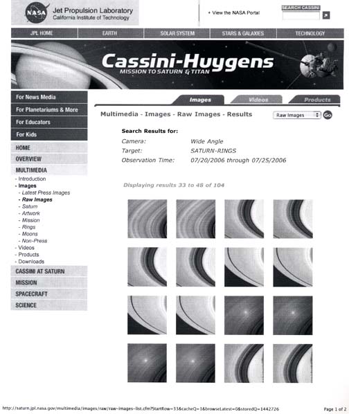 The July 23, 2006, images were taken in visible light with the Cassini spacecraft wide-angle camera at a distance of approximately 262,000 kilometers (163,000 miles) from Saturn. Image scale in the radial, or outward from Saturn, direction is 13 kilometers (8 miles) per pixel." ]