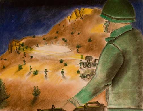 Ten years after the Sandia hills event, Paul McKeever at age 18 enlisted in the U. S. Army Reserves in August 1984. He is pictured here on far left. Paul was sent for basic training at Ft. Leonard Wood in Missouri where he trained with Company Delta 44 (Battalion 4, Brigade 4).