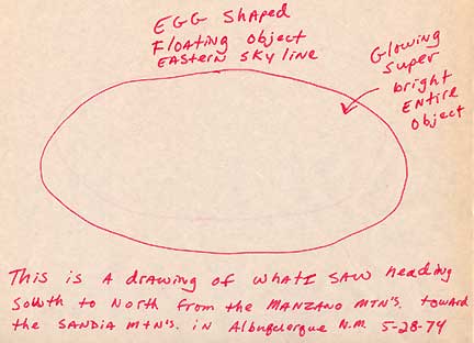 December 7, 2007 Albuquerque, New Mexico - Last week I presented the eyewitness testimony of an Albuquerque family – Paul McKeever, his mom and aunt - who watched a white, glowing disc move slowly in a 9 PM twilight sky over the city on May 28, 1974, and then chased after it in their car to dirt roads in the Sandia hills. There they saw the disc still glowing and apparently hovering horizontally on the side of a rocky hill, surrounded at a distance by military security armed with M-16s and facing the disc.