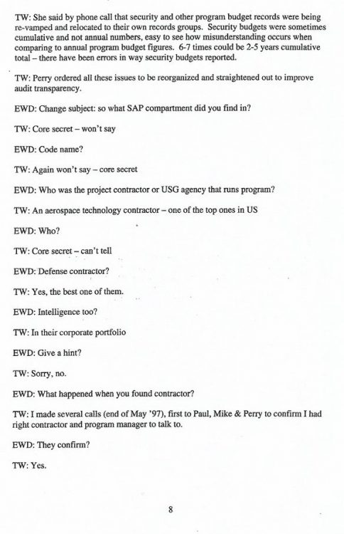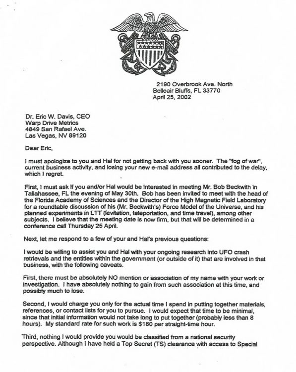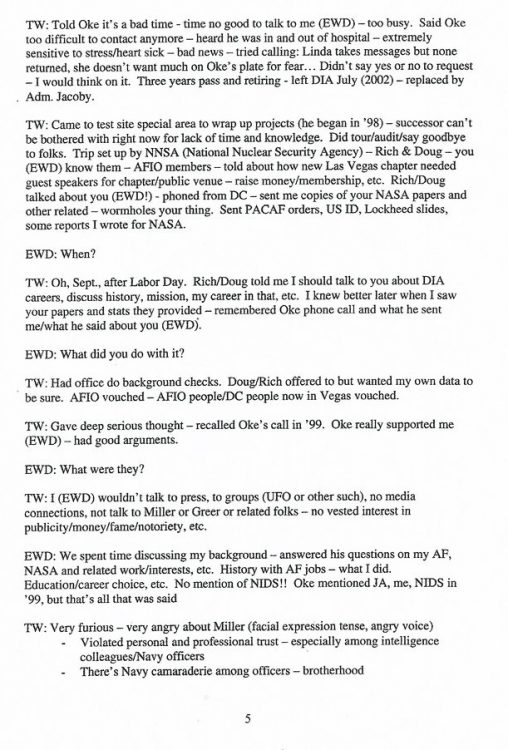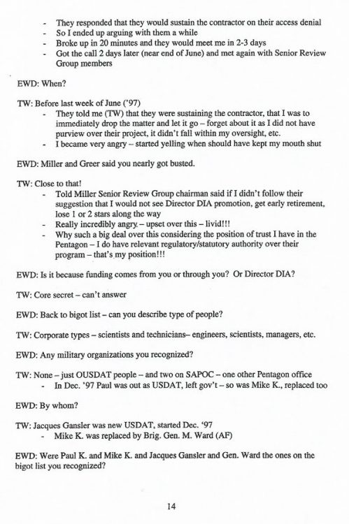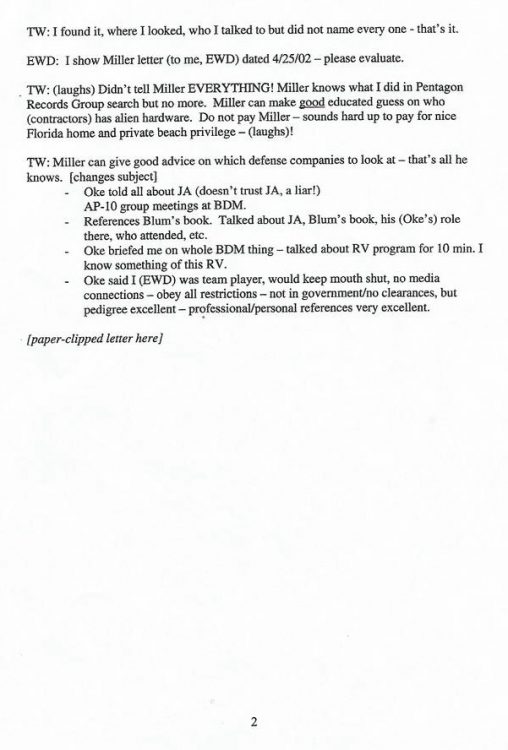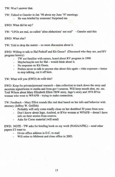 — Allegedly former Director, Defense Intelligence Agency (DIA) and Retired USN Vice Admiral Thomas R. Wilson talking with physicist Eric W. Davis, October 16, 2002, in car parked in EG&G parking lot, Las Vegas, Nevada