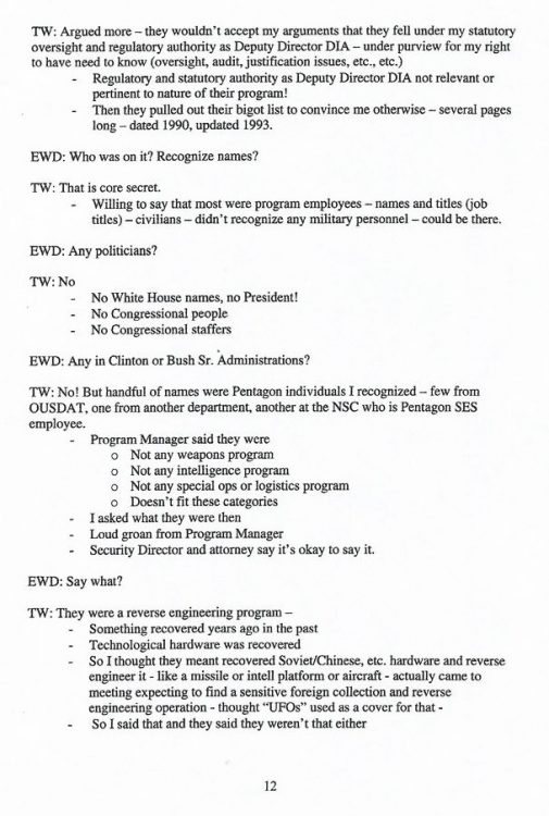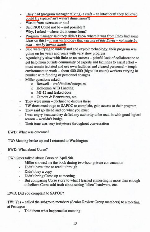 “Program manager said they didn't know where it (UFO) was from — it was technology that was not of this Earth — not made by man — not by human hands.”