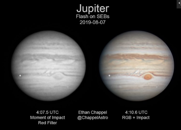 “This huge Great Red Spot anticyclonic storm is roughly the diameter of Earth and is rolling counterclockwise between two bands of clouds that are moving in opposite directions toward it.”