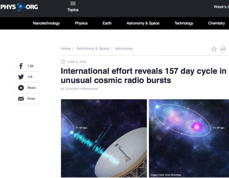 “The FRB intense energy bursts are not a cataclysmic event, it’s not a one-time event, and that makes them quite unusual. They might be artificial in origin.”
