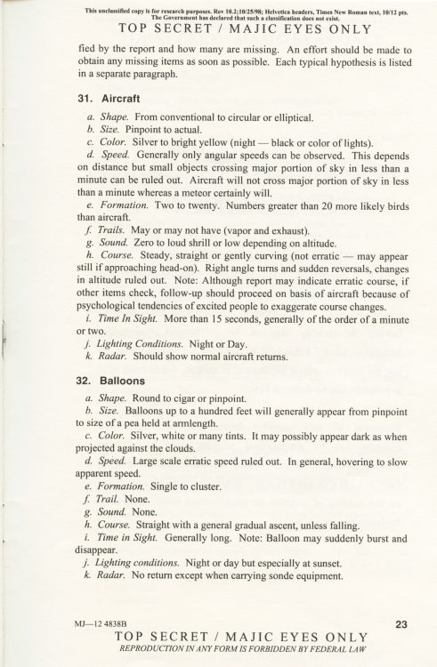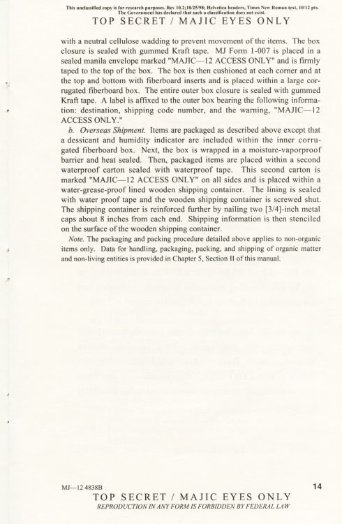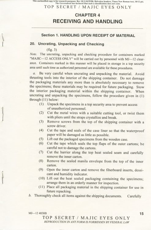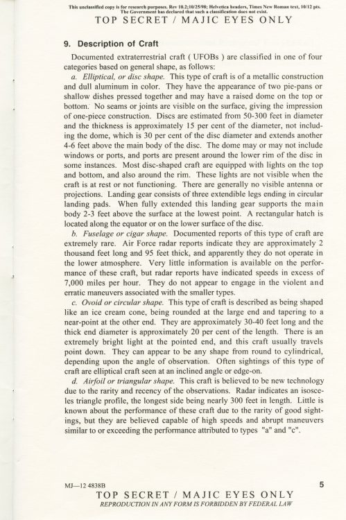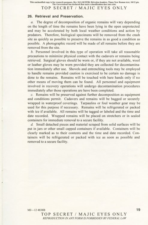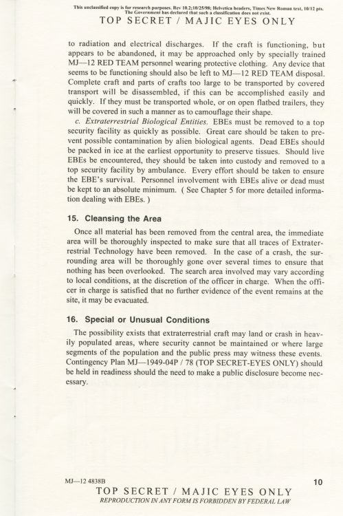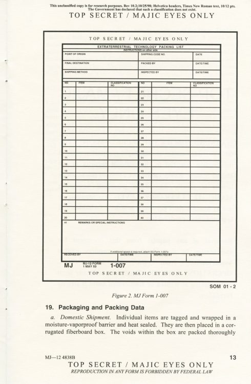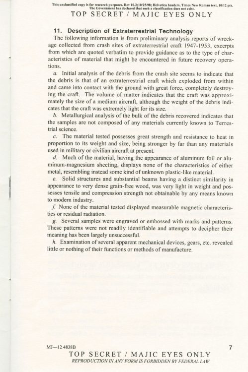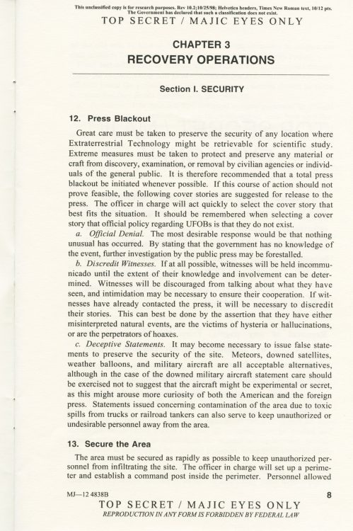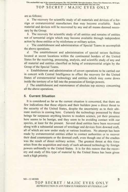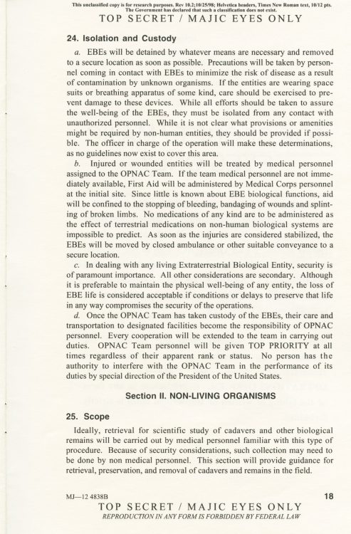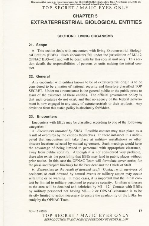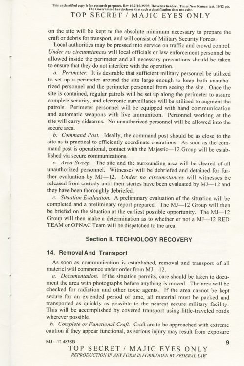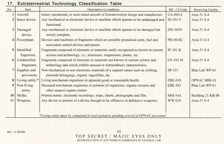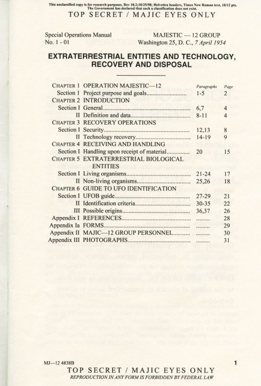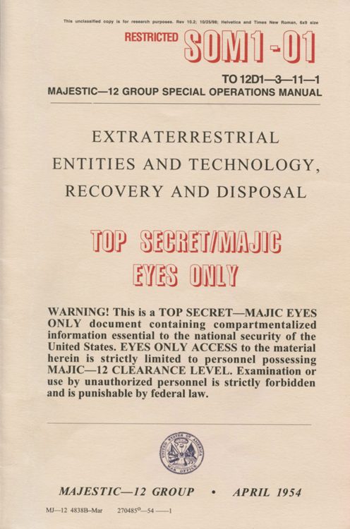 Part 2: SOM1 -01 “Extraterrestrial Entities and Technology, Recovery and Disposal” TOP SECRET/MAJIC EYES ONLY