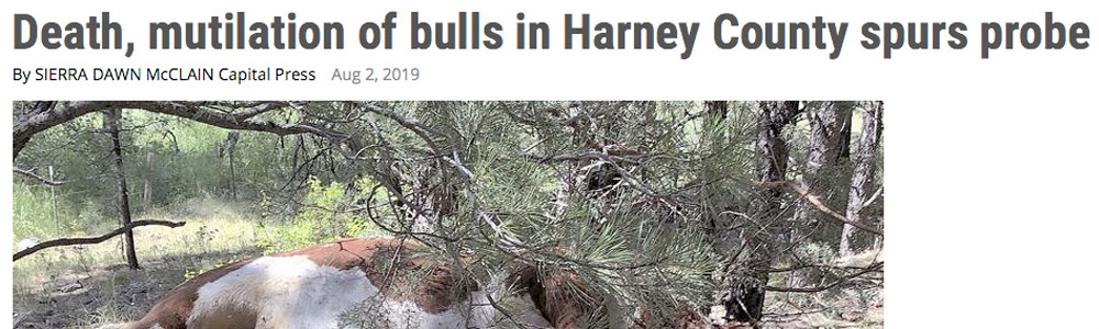 Reprinted August 12, 2019 Albuquerque, New Mexico - Since the 1970s, there have been hundreds of reports about bloodless half-cat mutilations in the United States, Canada, England and Singapore as well as other bloodless, mutilated animal reports around the world — even kangaroos in Australia. The following is an historic overview concentrated on bloodless half-cat mutilation reports from current August 2015 going backwards in time to the 1970s. The photographs are provided throughout to underscore the surgical, bloodless nature of this strange global phenomenon.